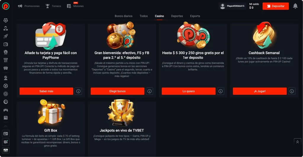 A muchos jugadores les gusta recibir bonos adicionales. Los códigos promocionales ayudan con esto. Tal código es una combinación corta de caracteres. Un jugador lo ingresa en el campo requerido y obtiene acceso al bono. Cada código promocional en PIN-UP funciona de su propia manera y activa una oferta específica.